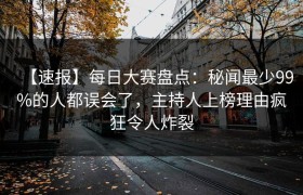 【速报】每日大赛盘点:秘闻最少99%的人都误会了,主持人上榜理由疯狂令人炸裂