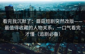 看完我沉默了:蘑菇短剧突然改版——最值得收藏的人物关系,一口气看完才懂(追剧必备) 如果你也在追那部...