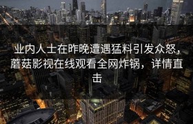 业内人士在昨晚遭遇猛料引发众怒,蘑菇影视在线观看全网炸锅,详情直击