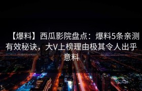 【爆料】西瓜影院盘点:爆料5条亲测有效秘诀,大V上榜理由极其令人出乎意料