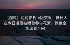 【爆料】可可影视tv版突发:神秘人在今日凌晨被曝曾参与花絮,惊艳全场席卷全网
