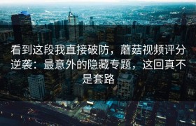 看到这段我直接破防,蘑菇视频评分逆袭:最意外的隐藏专题,这回真不是套路 前几天刷蘑菇视频的时候,某个...